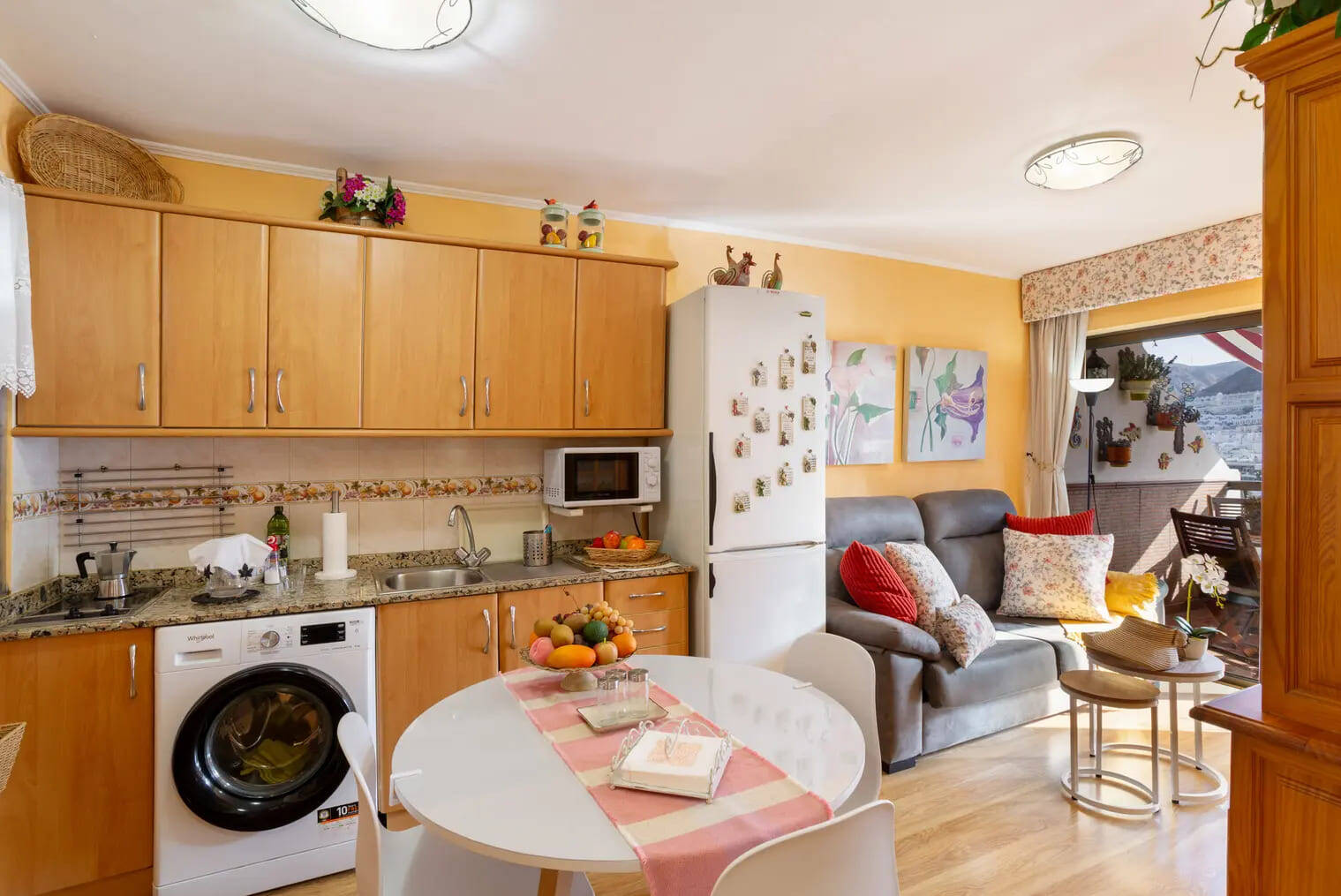 Con espectaculares panorámicas del océano Atlántico, Bungalow Flores con Vistas te invita a disfrutar de una estancia inolvidable en Puerto Rico, Mogán. Esta acogedora casa de 50 m², totalmente accesible y sin escalones, ofrece un ambiente cómodo y luminoso para hasta 4 huéspedes.