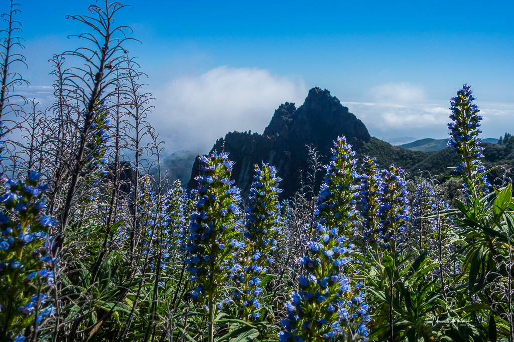 En las laderas de Tenteniguada, donde la tierra se alza hacia el susurro de las nubes, los tajinastes azules flanquean el sendero como antorchas vivientes, encendidas por el latido de la primavera. Erguidos en un silencio majestuoso, sus espigas floridas desafían al cielo, mientras los caminantes avanzan entre bruma y claridad, peregrinos de una belleza sobrecogedora.